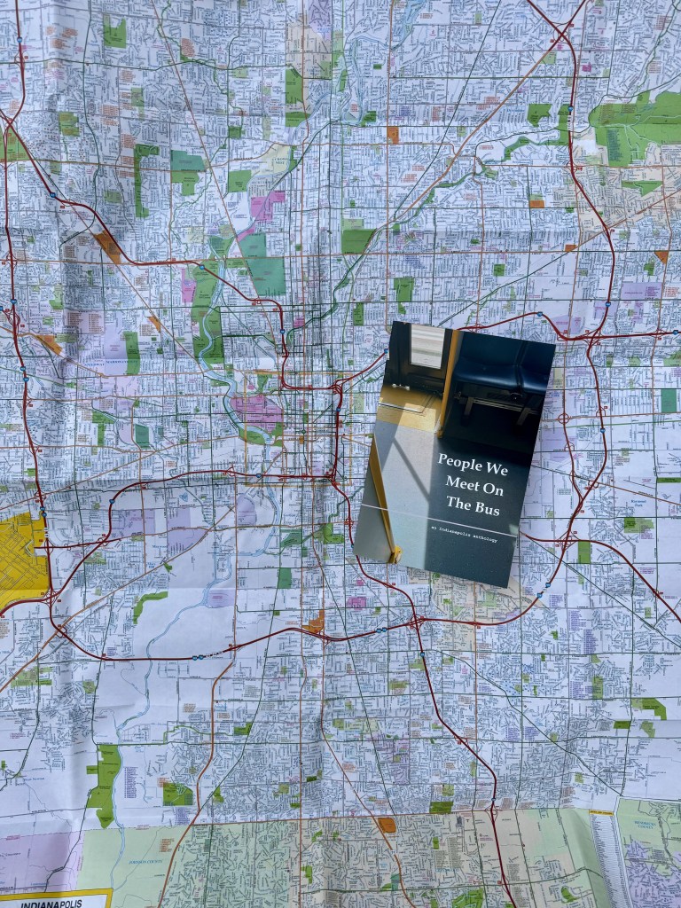 People We Meet on the Bus started as most good things do: a conversation between two people while out for a walk, discussing the community we were meeting and witnessing on the bus. We wanted more spirit, more celebration for people who use active transportation. A walk led to a conversation which led to an idea: to create a collaborative zine about the moments of solidarity we all get to experience via active transportation. We asked Indianapolis for works of poetry, prose, photography, and visual art describing interactions with our transportation system and the people encountered there. We reached out digitally, we invited friends, we passed out flyers all over town and on the bus. Indianapolis delivered.